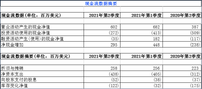 第二季度,公司支付现金股息5200万美元,回购1.56亿美元公司流通股票,完成了2018年11月5日公布的7.50亿美元股票回购计划。2021年7月1日,公司宣布启动一项新的金额高达10.4亿美元的股票回购计划,准备在3年内完成回购计划。