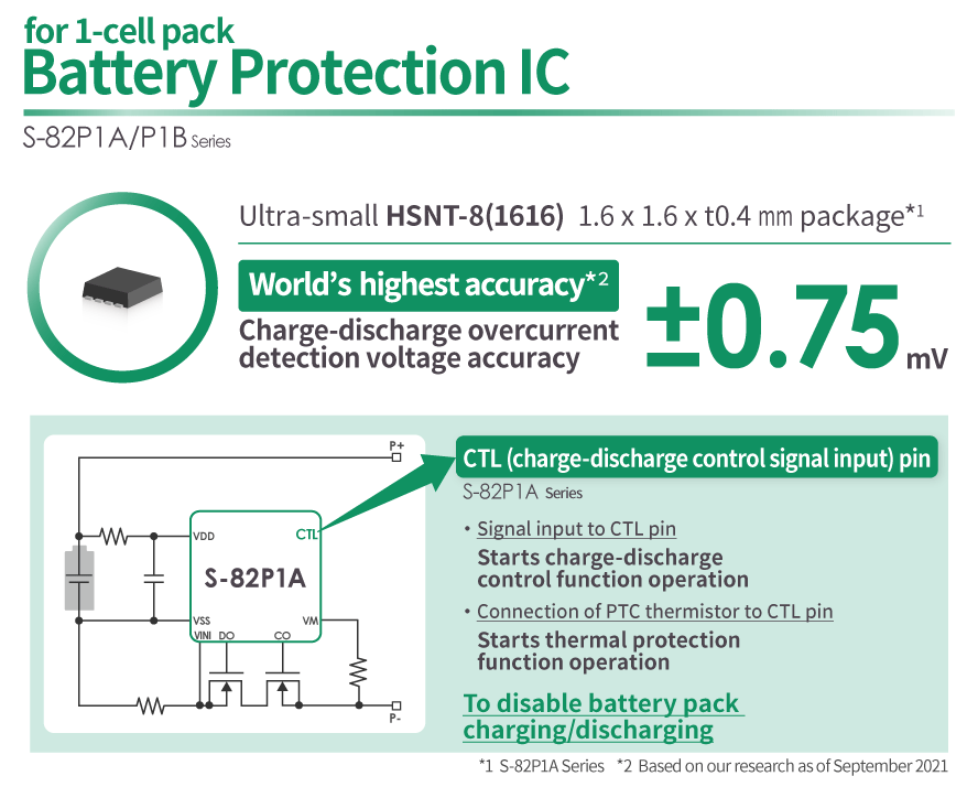 艾普凌科有限公司(ABLIC Inc.,总裁:Nobumasa Ishiai,总部:东京都港区,下称“ABLIC”)今天推出世界最高(*1)充电/放电过电流检测电压精度±0.75mV(*2) 的S-82P1A/S-82P1B系列单节电池保护IC。