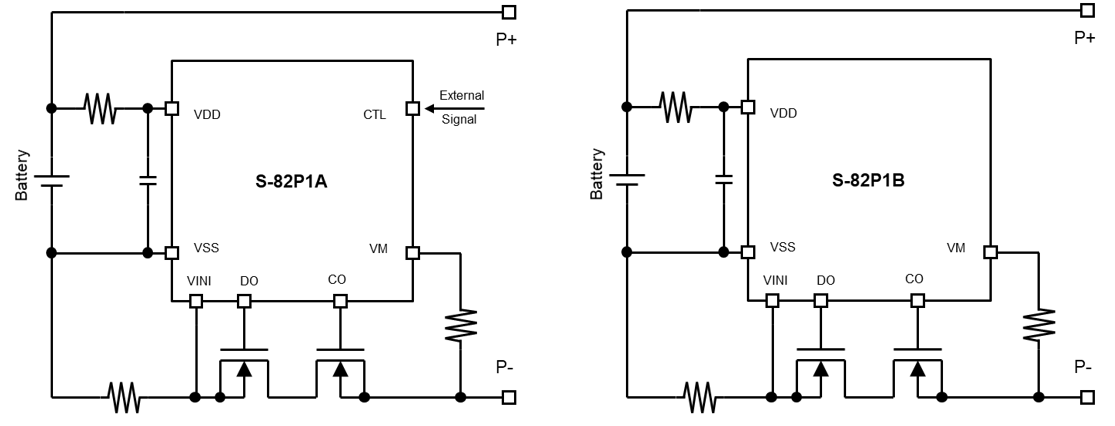 使用 S-82P1A / S-82P1B 系列的保护电路示例