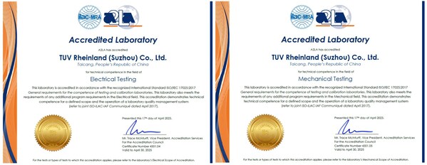 TUV莱茵长三角汽车电子EMC及汽车零部件测试实验室获A2LA认可资质