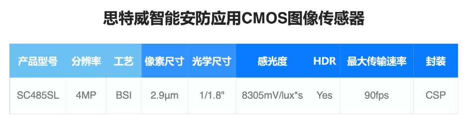 思特威(上海)电子科技股份有限公司(股票简称:思特威,股票代码:688213),推出Star Light(SL)Series超星光级系列4MP图像传感器——SC485SL。作为1/1.8英寸大靶面尺寸背照式图像传感器,该新品基于思特威SmartClarity®-3工艺技术打造,搭载了Lightbox IR®、SmartAOV™ 2.0等多项先进技术,具备高感度、高动态范围、低噪声、高温成像稳定与超低功耗等优势性能并支持全时录像(AOV)功能,以优异的成像表现,助力AI黑光全彩摄像头等智能安防应用的迭代升级。