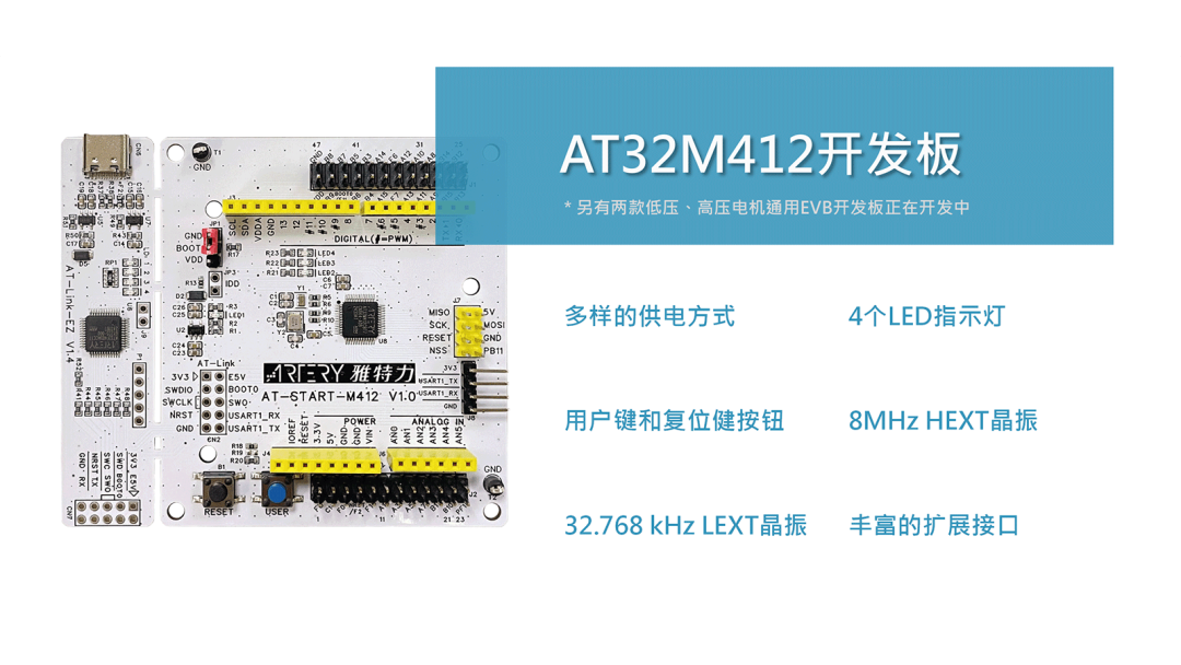 近日,雅特力科技宣布推出AT32M412/M416首款高性能电机控制专用MCU,为出行工具、家电及工业控制等应用提供理想选择。