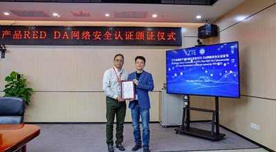 TÜV南德授予中兴通讯首张无线基站产品RED DA网络安全认证证书