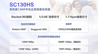 思特威(上海)电子科技股份有限公司(股票简称:思特威,股票代码:688213),推出手机应用系列13MP分辨率1/3.06英寸图像传感器新品——SC130HS。