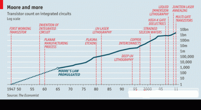 摩尔定律(Moore's Law)是由英特尔(Intel)创始人之一戈登·摩尔(Gordon Moore)于1965年提出的一项观察和预测,它描述了集成电路中晶体管数量的增长速度。