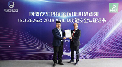 DEKRA德凯为同驭汽车科技颁发ISO 26262:2018 ASIL-D功能安全流程认证证书