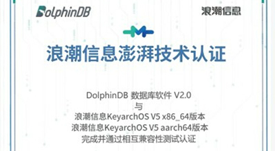 DolphinDB与KeyarchOS完成浪潮信息澎湃技术兼容性认证