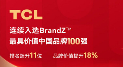 TCL连续入选BrandZ最具价值中国品牌100强,排名跃升11位