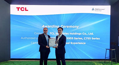 TCL旗舰电视机获颁TÜV莱茵"真实视觉体验"认证证书